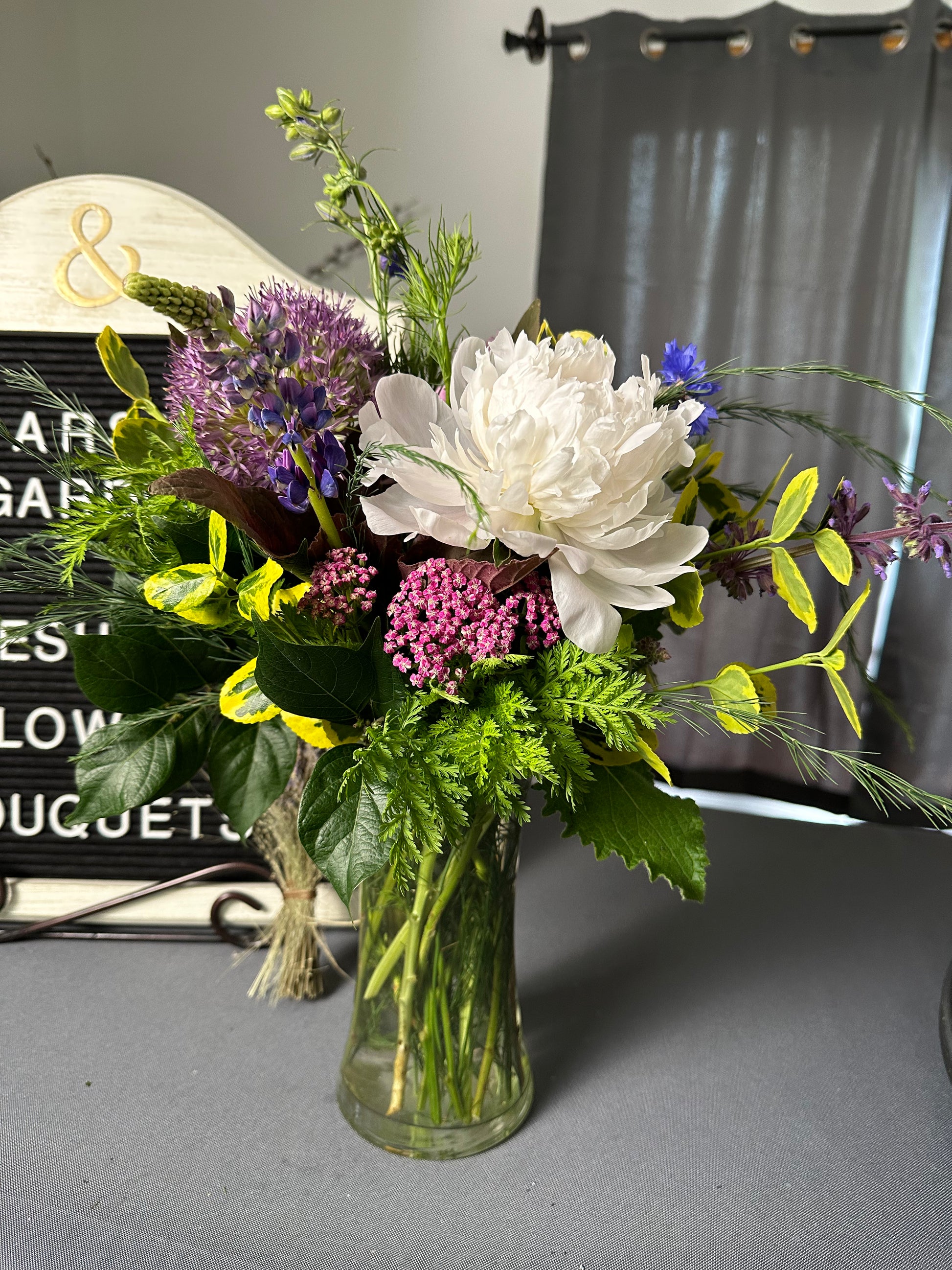 Delivered on Wednesdays so you can enjoy flowers all week and weekend long. Place them in your house to enjoy or send me an email with updated instructions to deliver them to a friend!